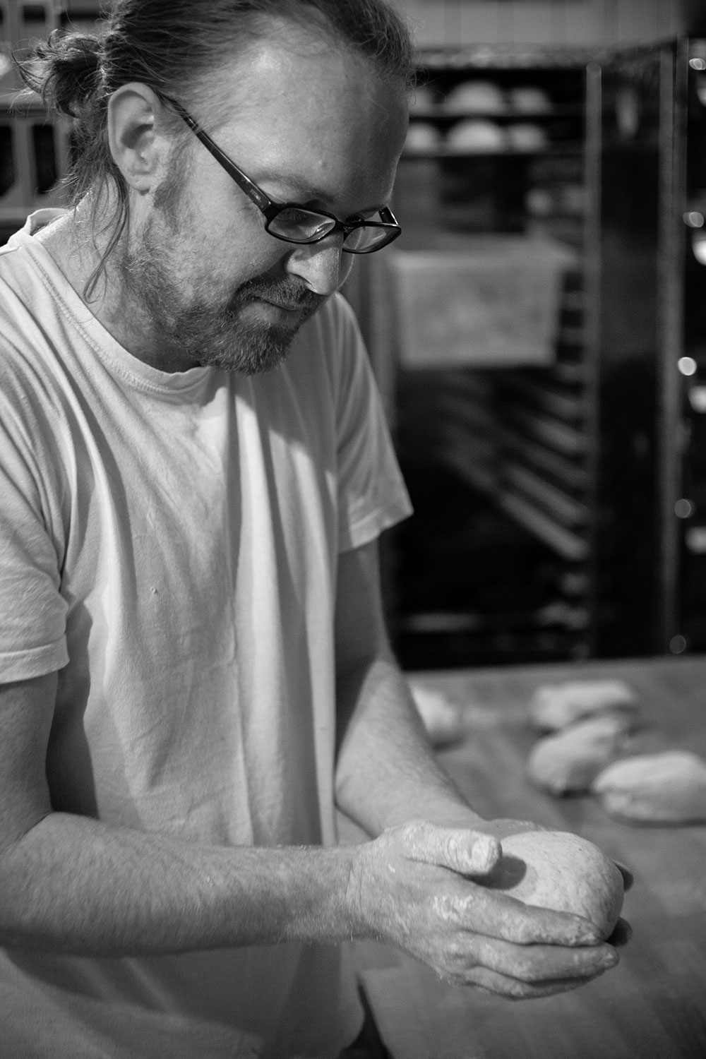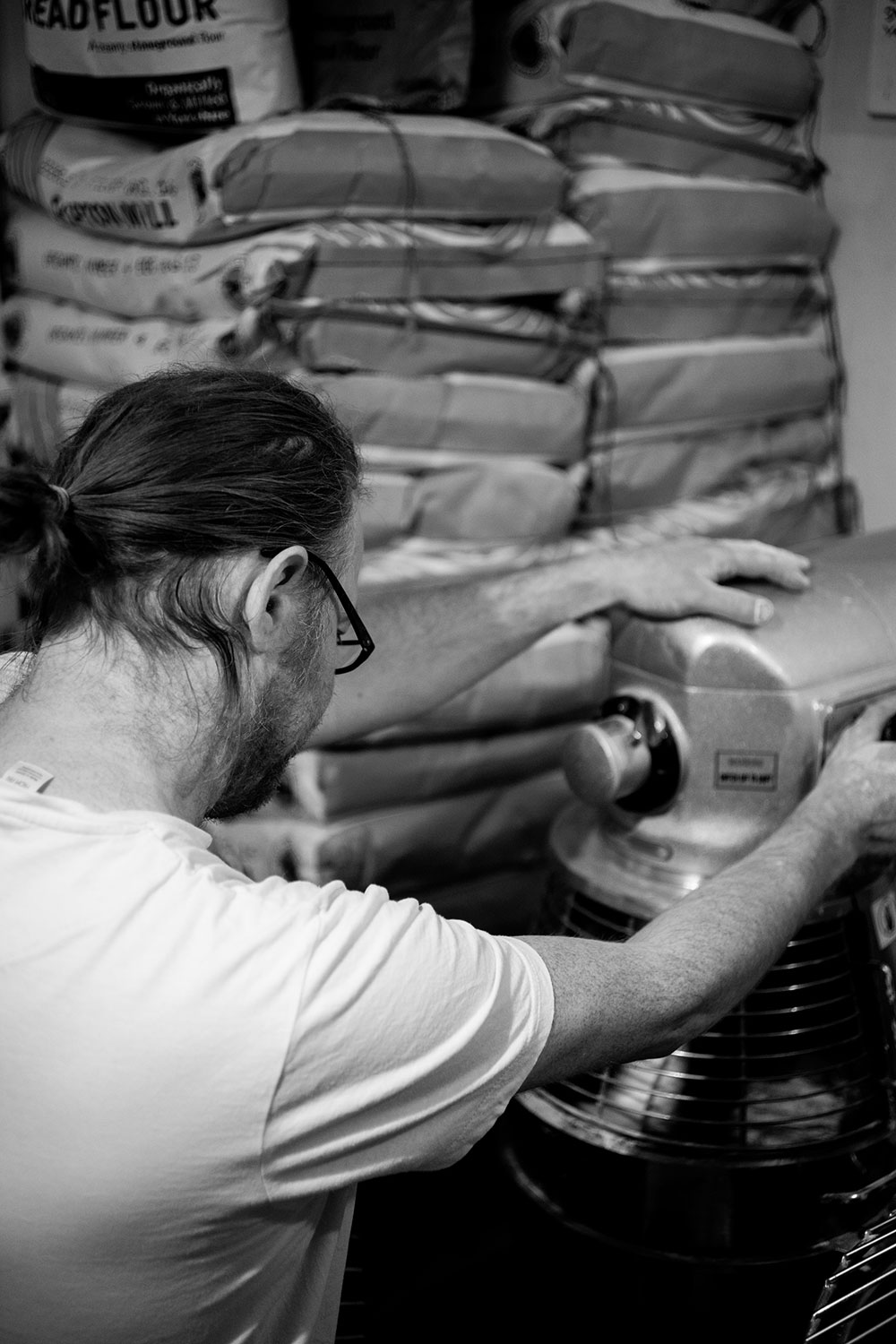 Phil, a record store manager until 5 years ago, runs ‘Food For Thought Bakery and Delicatessen‘ in Haxby, UK, with his wife Tina. A self-taught artisan baker, Phil uses old-fashioned methods including “low yeasted overnight sponges, natural sourdough levain or a combination of the two” to create over 12 varieties of bread for his customers across North Yorkshire.