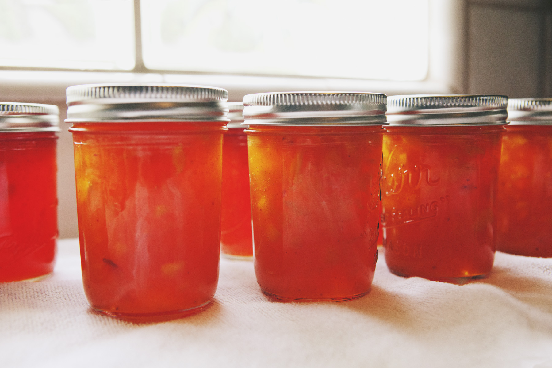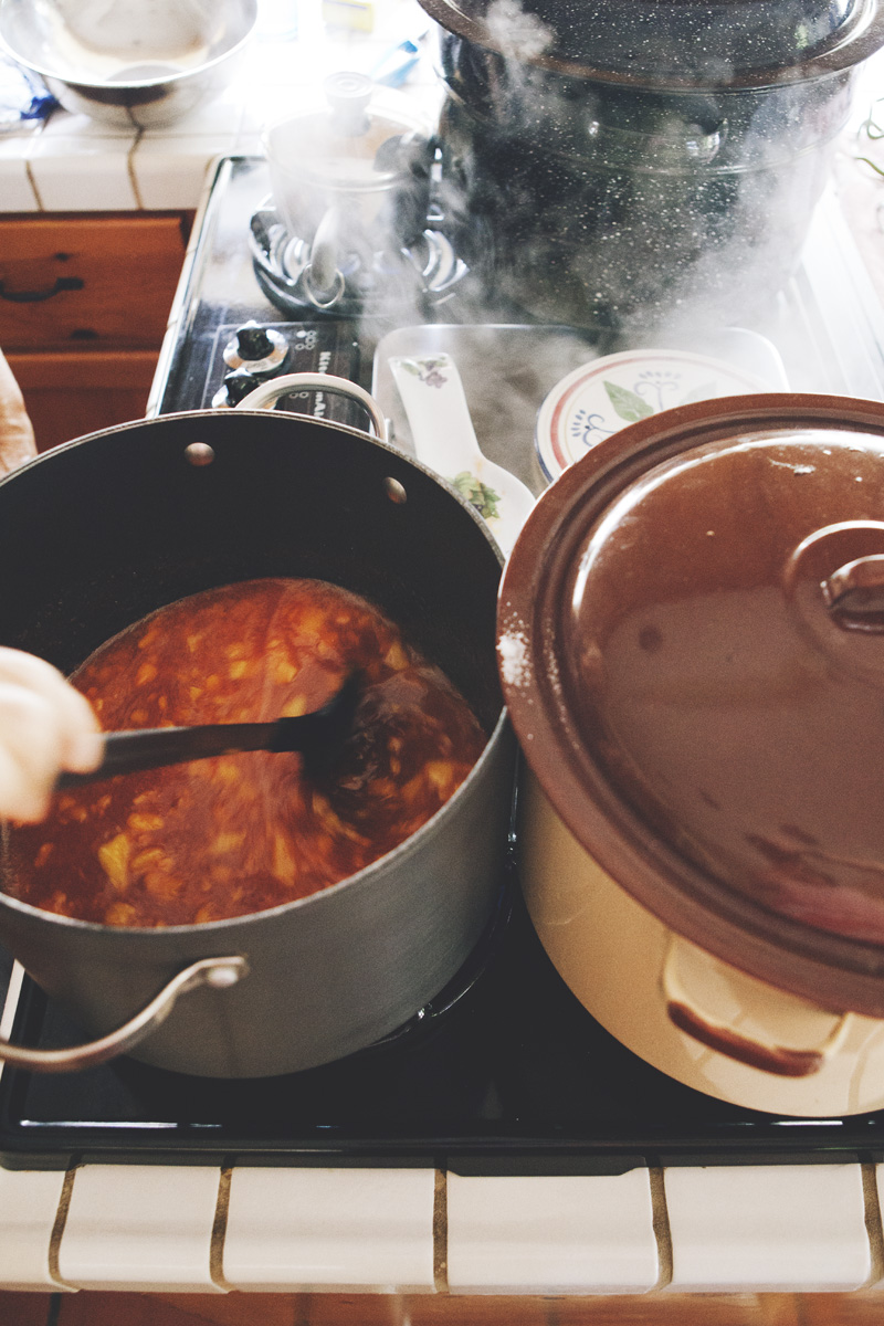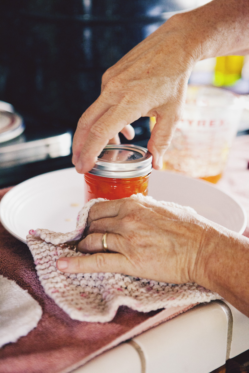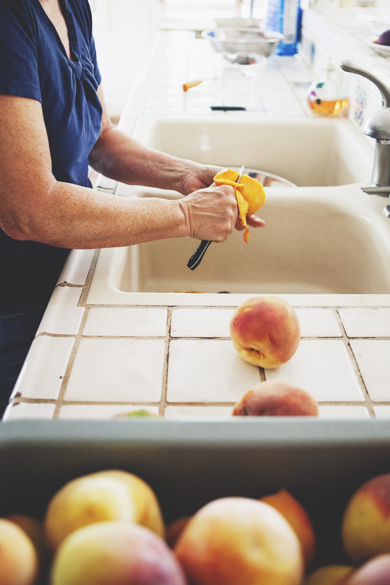 A few times a year my aunt can be found in her kitchen, canning or preserving one thing or another. A history buff and a journalist, she possesses a wealth of knowledge and stories she loves to pass along. As she walks me through the process of making peach jam, she recalls memories of her grandmother’s pantry stocked high with canned fruits, jams, and pickled vegetables. She tells me she learned to can to feel closer to her grandmother. I can’t help but feel closer to my aunt as, one by one, the jam jars seal themselves with a faint *pop* and we share the joy of knowing we’ve had a successful day in the kitchen.