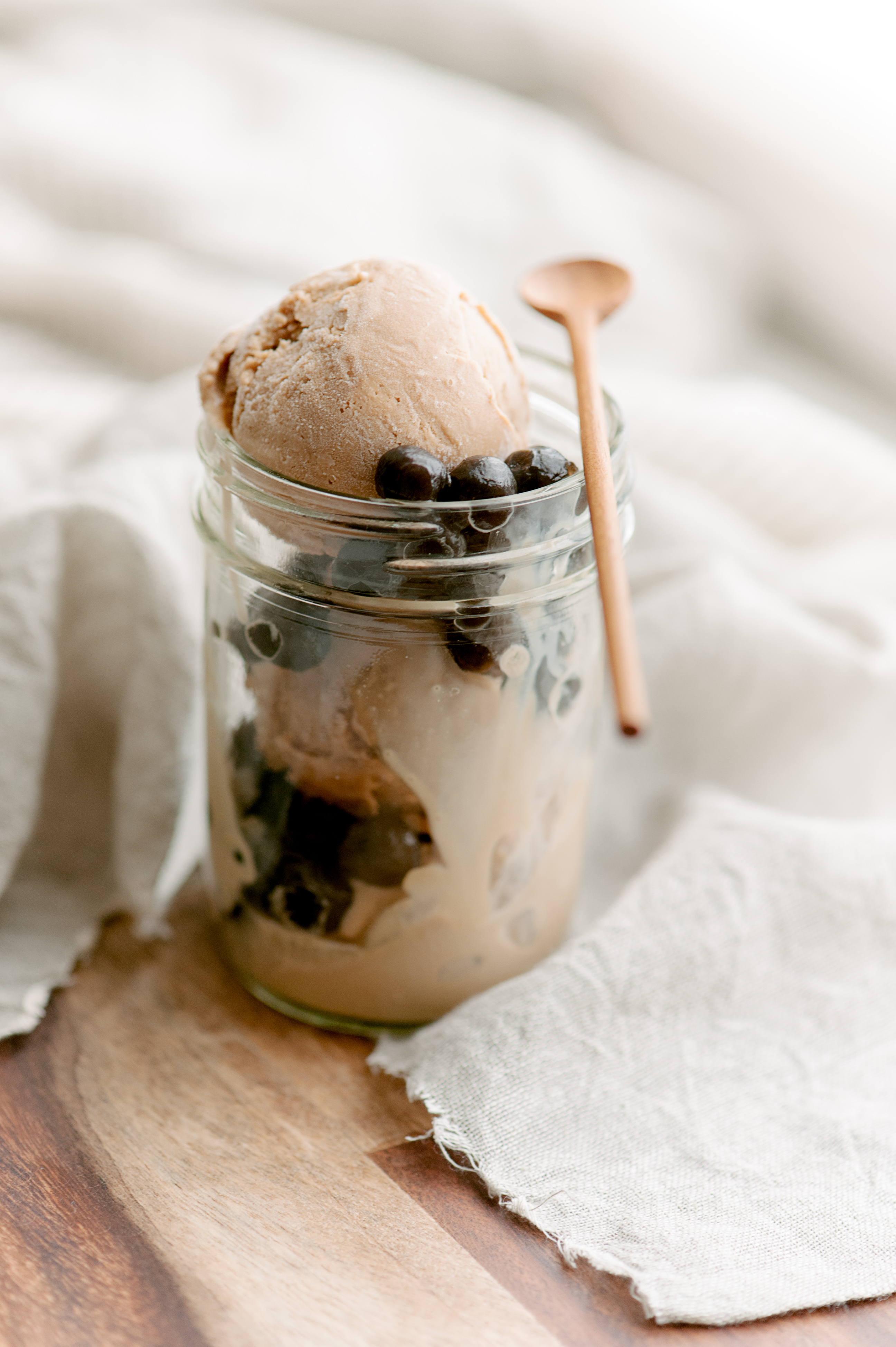 The benefit of homemade treats is that we’re able to experiment with recipes and seasonal ingredients to create something unique and to our liking. Also as avid travellers, we are constantly inspired by the cuisines of our travels and are excited when we are able to interpret those flavours into our dishes back at home. In the spring of this year, my husband and I spent six weeks touring the continent of Asia. Our journey took us back to destinations that we had previously visited and fallen in love with, like Japan. We also explored completely new places, Taiwan being one of them. It was a trip of a lifetime, and where we drew inspiration for this recipe. Blending together several of our favorite things, the result is our own frozen interpretation of the widely popular tapioca pearl milk tea. It’s a delicious combination of Japan’s rich royal milk tea flavour with the ubiquitous tapioca pearl milk tea that originated from Taiwan.